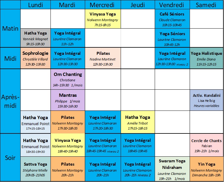 Vous pouvez changer d’horaire de cours et d’intervenant à votre guise tout au long de l’année (entre septembre et fin juin).
